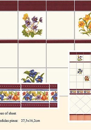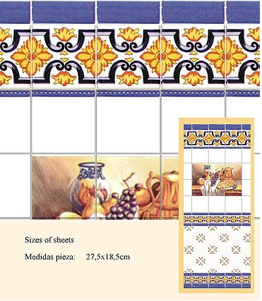 Azulejo mediterráneo. Con relieve 3D. Tamaño de cada hoja 27 5 x 18 5 cm. Mediterranean tiles. 3-D effect. Size of sheet 11′ x 7′ 1/2. Ref. 34328